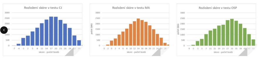 Výsledky našeho Národního testování, které provádíme v 5., 7. a 9. třídách základních škol napříč republikou, se pohybují v normálním středu křivky. Naše data i tvar rozložení výsledků dokazují, že chyba není u žáků, ale v kvalitě testů státem řízené organizace.